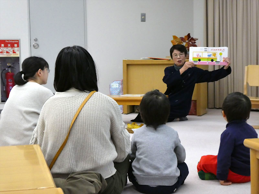 ボランティア団体「赤ちゃん広場こぶたのぶーぶ」のみなさんが、絵本や紙芝居の読み聞かせや、わらべうたや手遊びなどを行います。