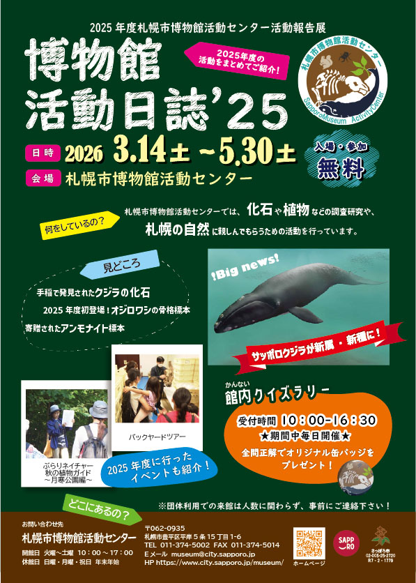 3月14日(土曜日)から札幌市博物館活動センターで企画展「博物館活動日誌’25」を開催します!