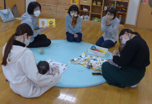 1歳未満のお子さんとご家族が、交流を楽しんでいるよ!これから親になる方の参加も大歓迎♪
